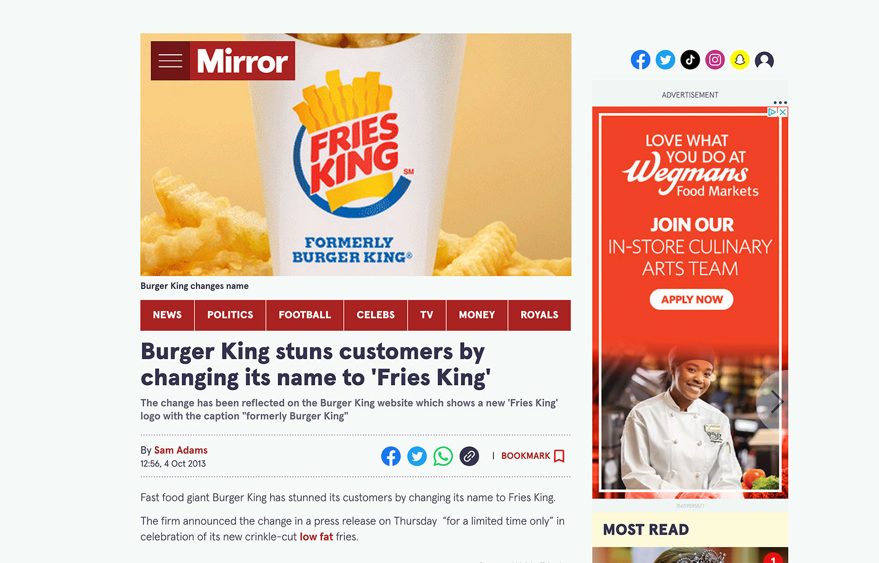 People flipped, the media backflipped. Everyone was talking about these new Satisfries