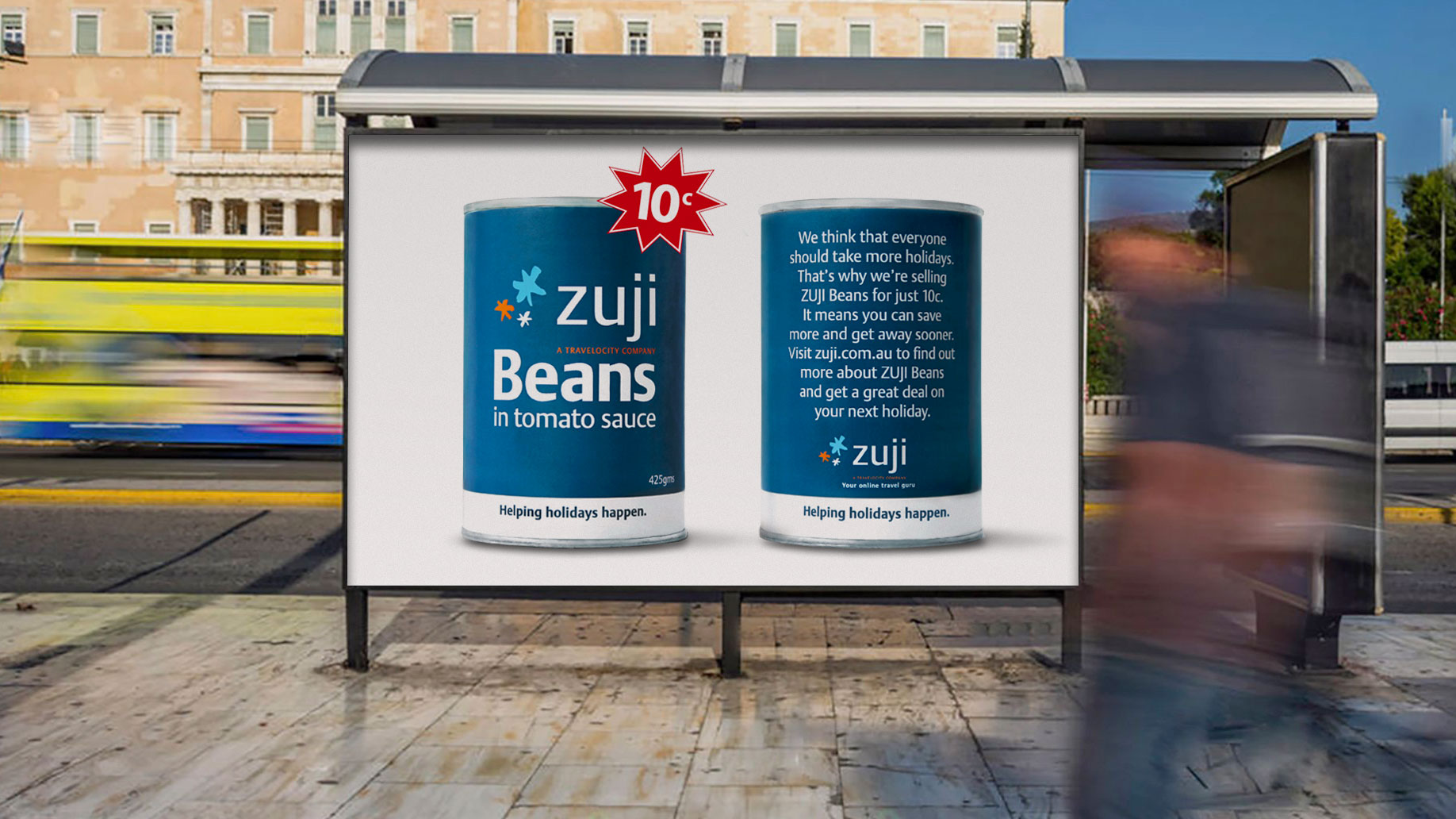 Better than that, Zuji ads were in people's kitchen pantries for months. All for the cost of a few beans.