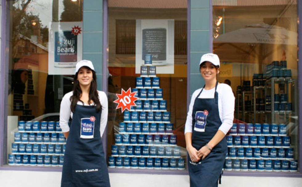 Better than that, Zuji ads were in people's kitchen pantries for months. All for the cost of a few beans.